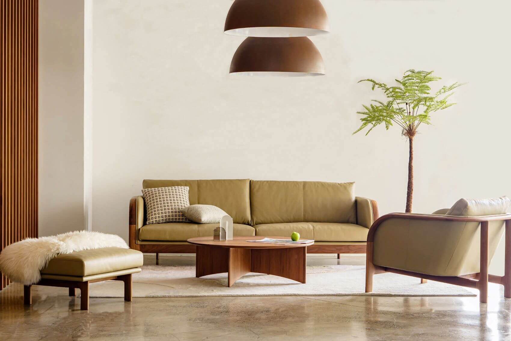 Được làm từ gỗ walnut tự nhiên – loại gỗ cao cấp không chỉ nổi tiếng với sắc nâu trầm tinh tế, những đường vân uốn lượn mềm mại mà còn có độ bền cao, mang lại sự vững chắc. Kết hợp cùng da thật, chất liệu ngày càng trở nên mềm mại và ấm áp theo thời gian, tạo nên những món nội thất vừa sang trọng, vừa ấm áp, mang đến trải nghiệm tuyệt vời cho người dùng.