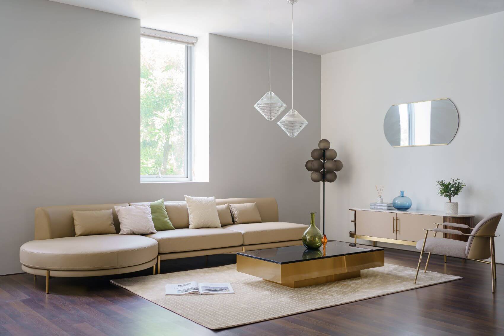 Bộ sưu tập Valente mang đến không gian sống sự hòa quyện hoàn hảo giữa gam màu trầm của gỗ và vải, tạo nên cảm giác mạnh mẽ và hài hòa. Chân kim loại cao cấp màu vàng không chỉ làm tăng thêm vẻ đẹp sang trọng và quý phái, mà còn đảm bảo độ bền và sự chắc chắn cho sản phẩm. Mặt bàn sử dụng đá tự nhiên tinh tế, toát lên vẻ đẳng cấp. Mỗi thiết kế trong bộ sưu tập Valente đều được cân đối hoàn hảo, giúp sản phẩm dễ dàng phù hợp với mọi phong cách trang trí nội thất, từ cổ điển đến hiện đại.