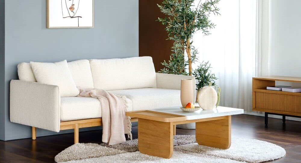 Tùy vào nhu cầu sử dụng mà bạn có thể lựa chọn bàn bên hoặc ghế đôn với kích thước và vật liệu thích hợp, như mặt bàn gỗ MDF Veneer beech trong bộ sưu tập Sài Gòn, mang đến sự ngăn nắp và tiện lợi cho phòng khách nhỏ.