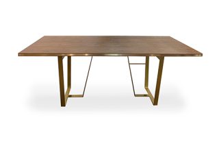 Chân inox màu gold -cạnh bàn ốp inox màu gold -Mặt bàn Gỗ+mdf veneer Oak