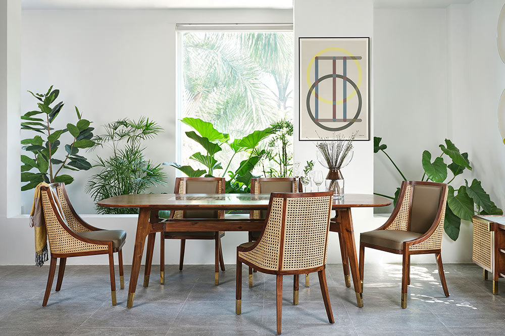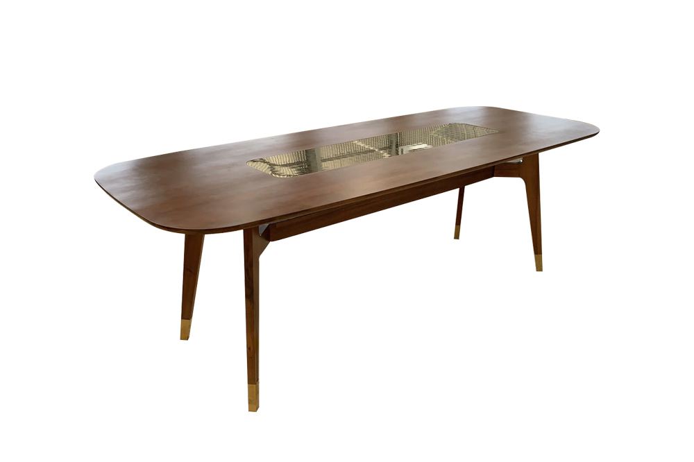 Bàn ăn Mây được làm từ gỗ tràm đỏ kết hợp với inox màu gold. Với những đường nét chạm khắc vân mây tinh tế cùng phong cách thuần việt, sản phẩm mang lại cảm giác thanh bình và gần gũi với thiên nhiên. Tông màu gold mang lại sự sang trọng cho không gian phòng ăn hiện đại.