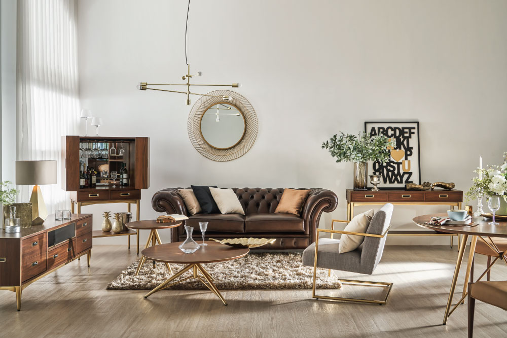 Kết cấu mạnh mẽ mang cảm hứng công nghiệp cơ khí tạo cho sản phẩm bàn bên Maxine trở nên cá tính và lạ mặt. Bên cạnh đó, sản phẩm vẫn sử dụng chất liệu kim loại đồng, khung gỗ beech và vân gỗ mdf của bộ sưu tập Maxine. Sản phẩm là góp phận tạo nên sự kết nối với sofa trong phòng khách.