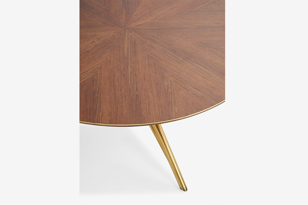 Bàn nước Maxine ghi dấu ấn với nét tròn tinh tế và bề mặt vân gỗ hài hòa. Kim loại mạ đồng được sử dụng mạnh mẽ cho kiểu chân lạ mắt, sang trọng, và được sử dùng làm bo viền cho toàn bộ sản phẩm vừa tạo điểm nhấn cho phòng khách và bảo vệ phần gỗ tránh bị va đập.