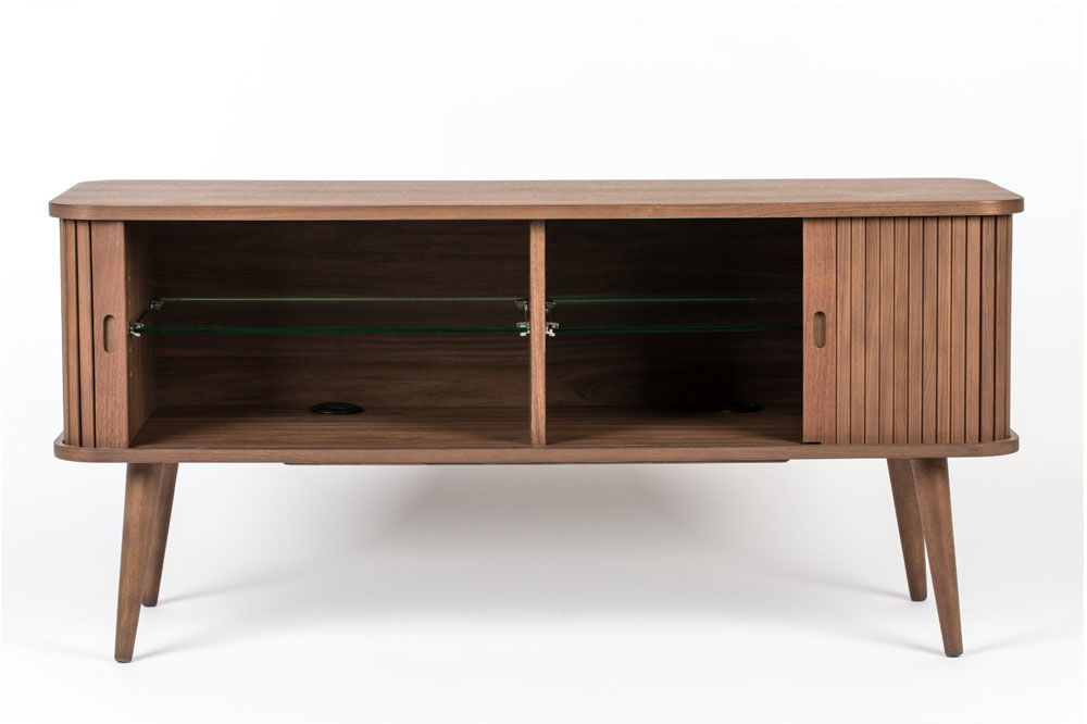 The horizontal Barbier walnut TV cabinet with 2 sliding cabinet doors to the sides helps to save space and increase aesthetics. Luxury glass shelves, b can easily arrange the furniture inside. The cabinet can also become a beautiful and convenient TV cabinet.