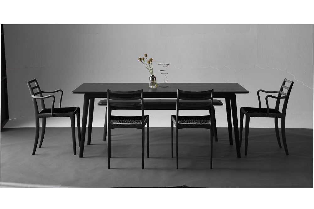 Elegance chair is made from American white ash. The transparent and slightly flexible seat is woven with polyester rope from Germany whose quality, high elasticity, and weaving method are