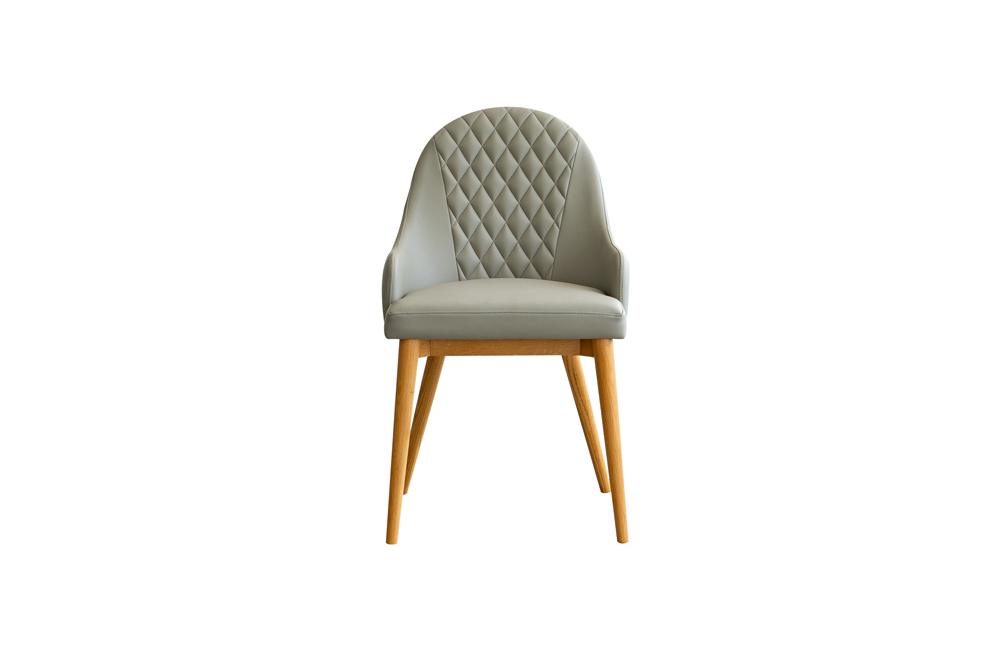 Ghế Oak Pu Omf được thiết kế phần chân từ gỗ sồi tự nhiên kết hợp với lớp bọc da công nghiệp màu xám tro và những đường vân tạo sự cách điệu ở phần lưng ghế mang đến sự chắc chắn và cảm giác êm ái cho người sử dụng.