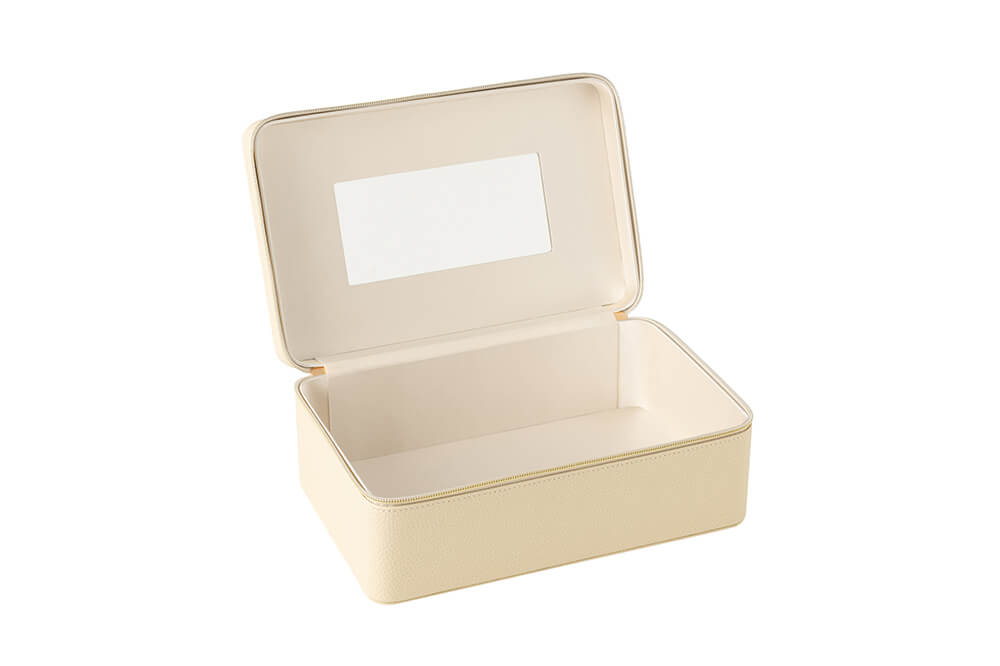 Hộp Đựng Mỹ Phẩm + Gương Da Nhân Tạo Màu Be