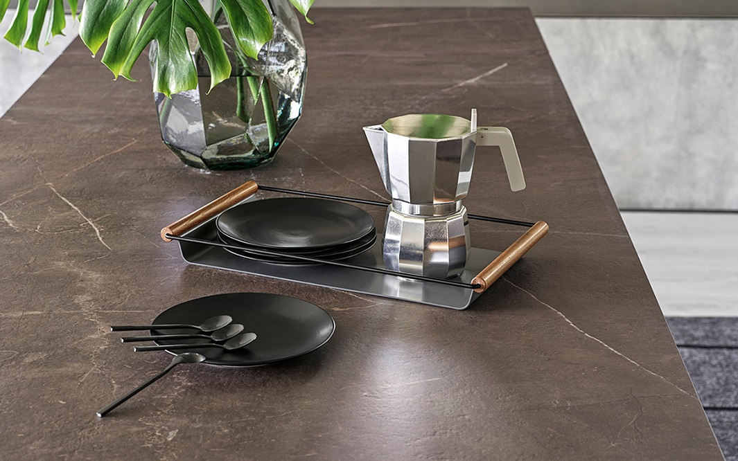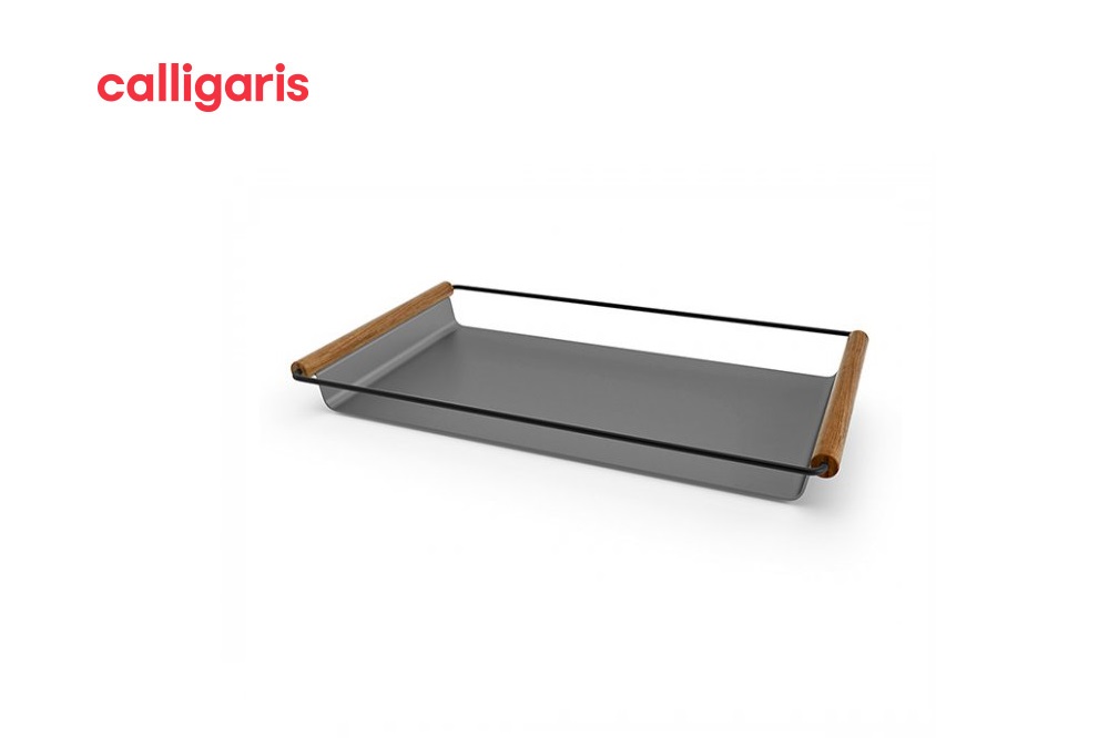APOLLO là một khay kim loại hình chữ nhật với tay cầm bằng gỗ tần bì - sự tương phản về mặt xúc giác này tạo nên một món đồ chức năng với cảm giác tinh tế.