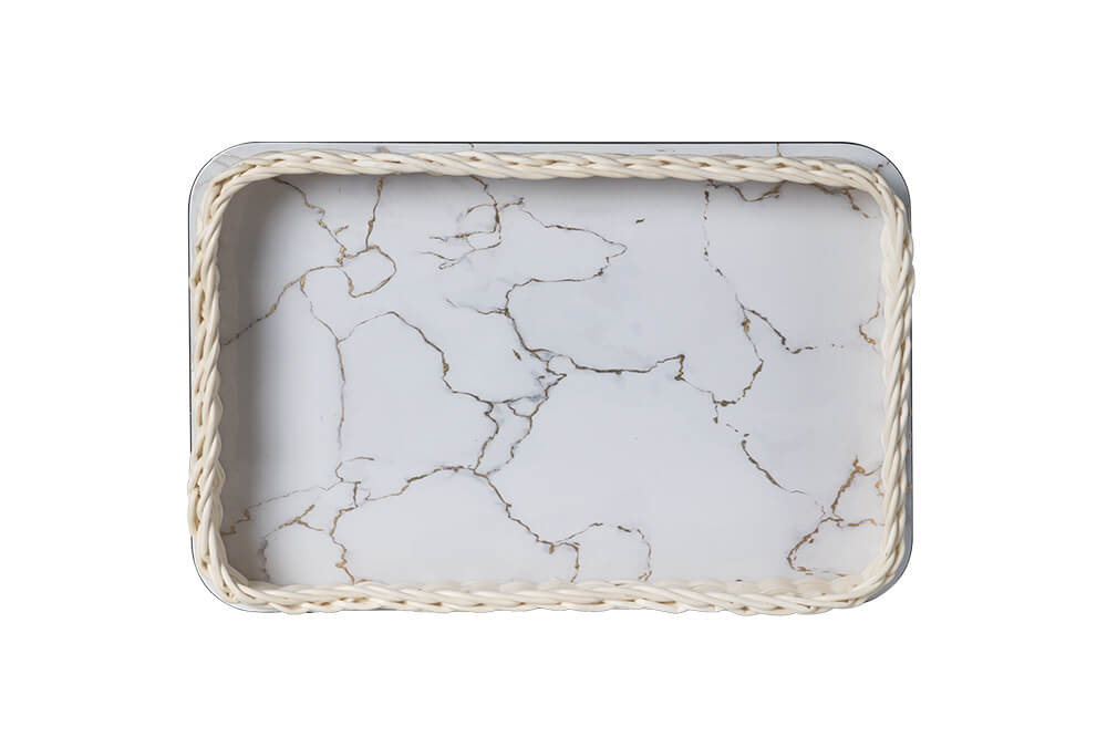Khay Mây Vân Đá Trắng Thếp Vàng