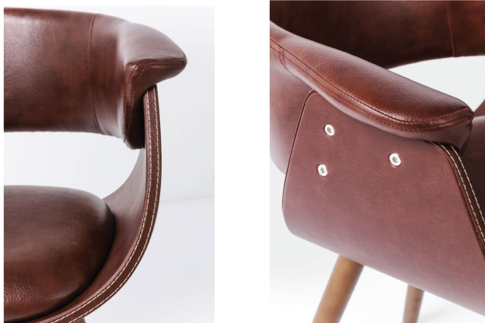 Chân gỗ, mặt ngồi nệm bọc da công nghiệp