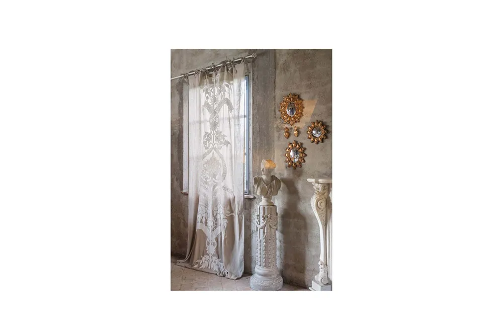 Rèm treo Dentelle phối linen và cotton tông beige, bề mặt vải rũ nhẹ tạo cảm giác mềm mại cho khung cửa sổ. Phần chân rèm được trang trí họa tiết thêu Dentelle tinh tế, mang lại vẻ lãng mạn và thanh lịch như những ô cửa sổ trong nhà cổ châu Âu. Ánh sáng xuyên qua lớp rèm tạo độ khuếch tán dịu, giữ được sự riêng tư mà vẫn đảm bảo độ sáng cho căn phòng. Phù hợp cho phòng ngủ, phòng ăn hoặc phòng khách mang phong cách Country, Cottage hoặc Tân Cổ Điển.