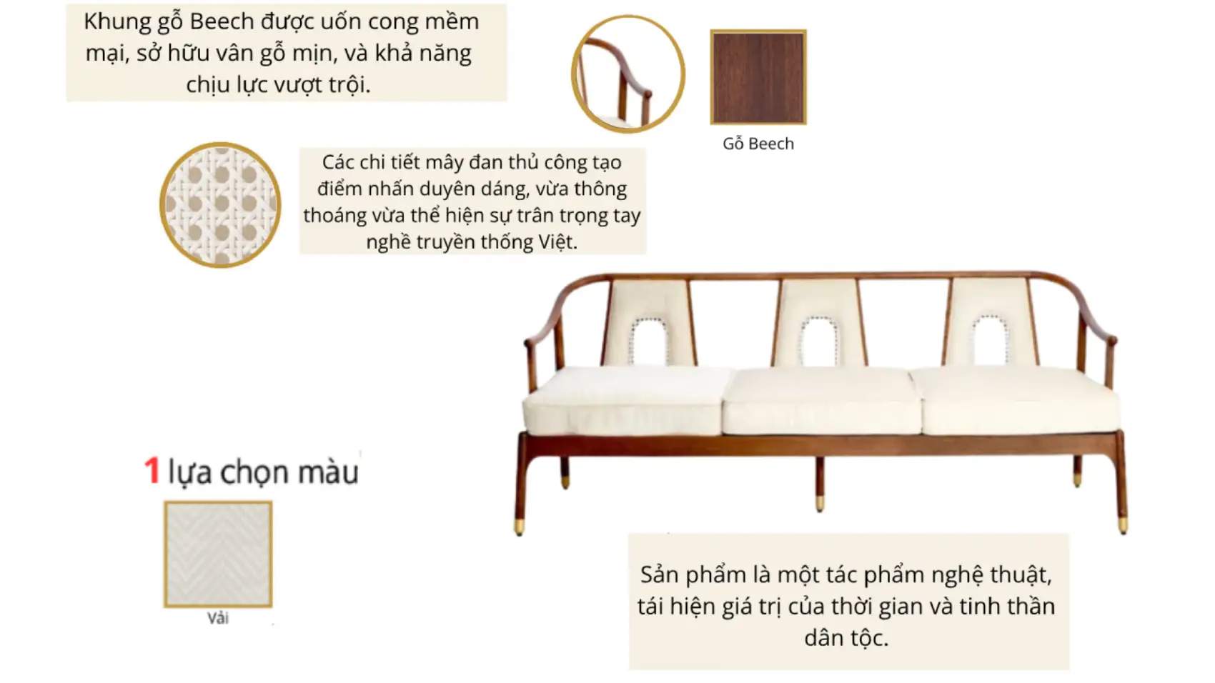 Bộ sofa Hùng King 3 chỗ với thiết kế thanh lịch, hòa quyện giữa vẻ đẹp tự nhiên của gỗ beech và sự mềm mại của nệm, mang đến không gian tiếp khách tinh tế, đẳng cấp. Điểm nhấn của dòng sofa này là sự kết hợp giữa công năng và thẩm mỹ, tạo nên nét đẹp sang trọng và ấm cúng cho không gian sống của bạn.