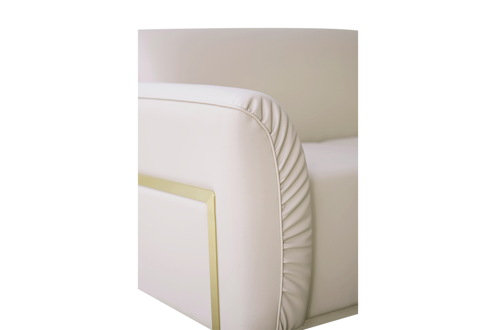 Sofa Porto da 3 chỗ hiện đại mẫu VACT10509 với đường may tinh tế gấp nếp hai bên tay sofa mang lại cảm giác dễ chịu cho không gian phòng khách. Điểm nhấn của sofa là inox mạ gold trang trí bên thành sofa rất vững chắc.
