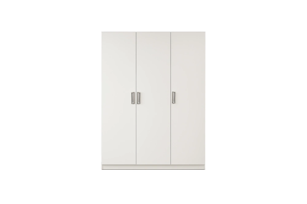 Tủ áo MFC kích thước 1600 x 600 x 2000 mm có thiết kế hiện đại, màu trắng trang nhã. Phần ngoài gồm ba cánh cửa mở theo chiều ngang, mỗi cánh có tay nắm chắc chắn, dễ thao tác. Bên trong tủ được chia thành các khoang chứa đồ đa năng, phù hợp để sắp xếp quần áo, phụ kiện và các vật dụng nhỏ gọn.