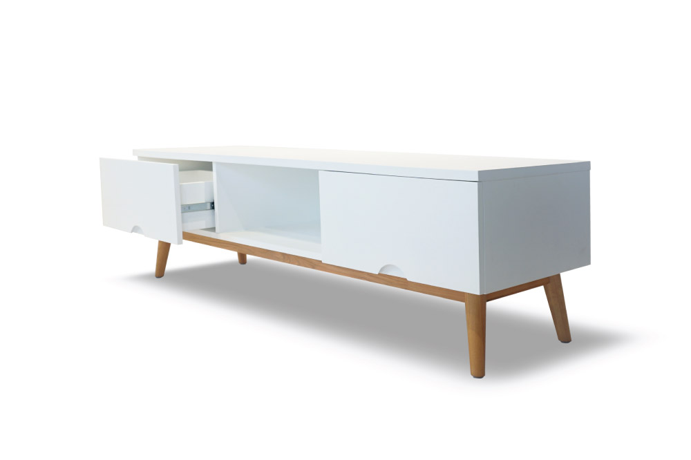 Tủ tivi Roma hiện đại với tông màu trắng cùng chân gỗ tần bì tự nhiên, được gia công tỉ mỉ từng góc cạnh. Bạn nên kết hợp cùng bộ sưu tập Roma để căn phòng được hoàn hảo hơn.
