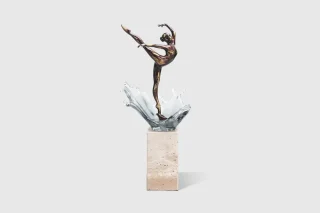 Tượng Ballet Of The Tides khắc họa dáng vũ công vươn người phủ tông đồng nâu ấm trên bệ resin trong mô phỏng gợn nước, tất cả đặt trên đế đá marble. Sự đối lập giữa chuyển động mềm mại và khối đá vững chãi tạo nên cảm giác tìm thấy bình yên giữa nhịp sống chuyển động. Phù hợp đặt trong không gian Contemporary, Modern Classic.